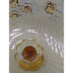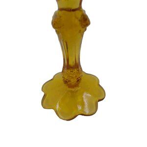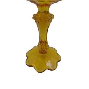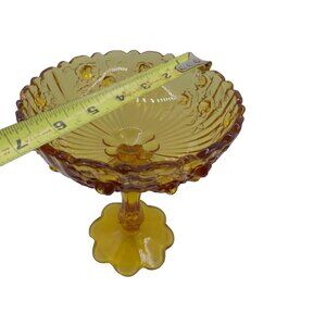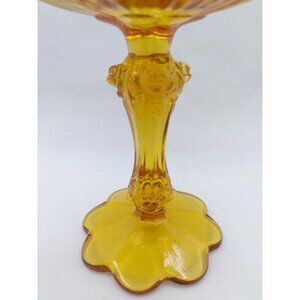 Vtg Unmarked Fenton Raised Cabbage Rose Amber Glass Pedestal Compote Candy Dish