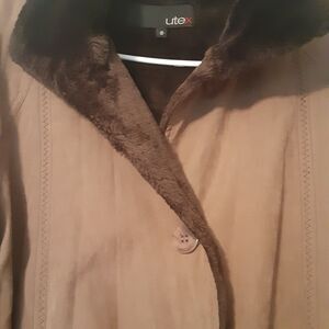 Stay warm and stylish with this vintage Utex women's trench coat jacket. The long brown jacket features a solid pattern and a button closure, with pockets to keep your belongings safe. Made from polyester, the outer shell and lining material provide durability and comfort.