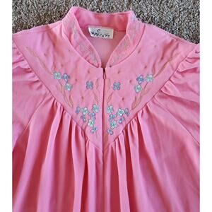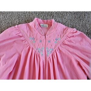 Vtg VANITY FAIR Zip Short Robe Cozy Velour Fleece Size 2XL Pink w/Embroidery