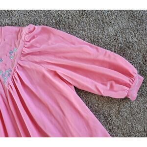 This vintage Vanity Fair short robe is perfect for cozy evenings at home. Made from soft velour fleece, it features delicate embroidery on a pretty pink background. The robe is a plus size 2XL and measures 27 inches from armpit to armpit with a shoulder to hem length of 40 inches.
