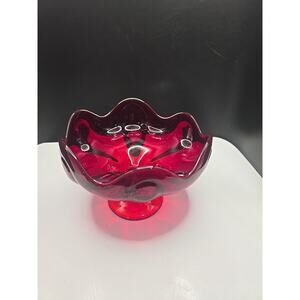 Vtg VIKING RUBY RED GLASS FLUTED COMPOTE 7" dish Candy Bowl MCM 1940s Decorative