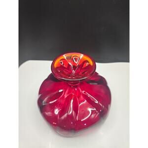 This vintage Viking ruby red glass fluted compote is a 6.5" by 4.5 inches tall dish that doubles as a candy bowl, perfect for adding a touch of Mid-Century Modern decor to any space. Made in the United States during the 1940s, this collectible piece exudes a retro charm that will surely be a standout in any collection. Its vibrant red color and fluted design make it both functional and visually appealing, making it a unique and stylish addition to any vintage decor.