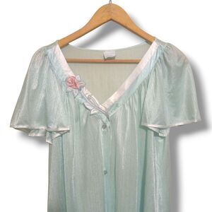 Vtg Val Mode Button Front Robe-Medium-Flowers-Pockets-Flutter Sleeve-Knee Length