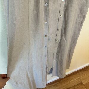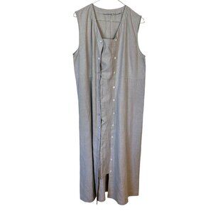Vtg Valarie Stevens Beige Maxi Dress Linen Button Up Womens 12 Shift Lagenlook