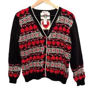 Vintage Hand-Embroidered Cardigan Sweater Size Medium Lovecore Valentines Day Ramie Knit