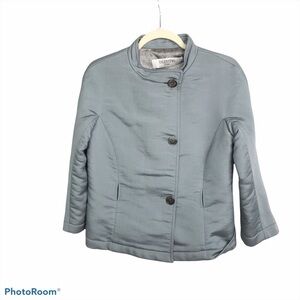 Vtg Valentino Roma 3 button moto style jacket blazer. Blueish silvery color with a slight shimmer. Light feel it’s a hardier make. Classic, timeless, and well made.