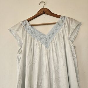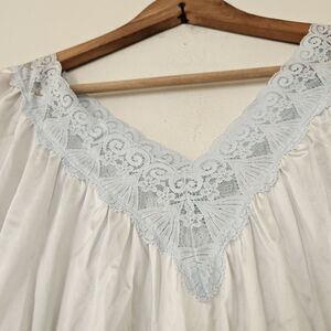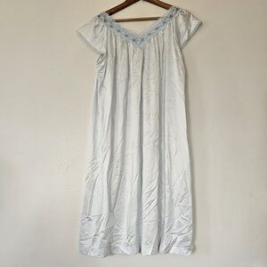 Vtg Vanity Fair Babydoll Slip Dress Women M Blue Nylon Floral Lace Trim Romantic