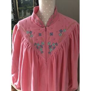 Vtg Vanity Fair House Coat Robe Zip Short Cozy Velour Size 2XL Pink w/Embroidery