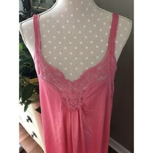 Vtg Vanity Fair Nightgown Sexy Hot Pink Long Lace Made USA Women’s Medium