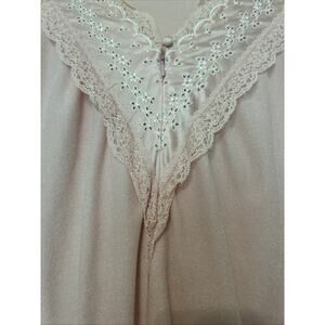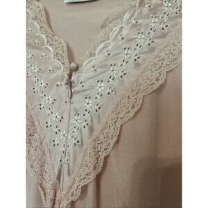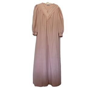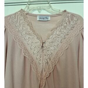 Vtg Vanity Fair Pink Housecoat Sz Large Embroidered Lace Zip Up Lounger Robe