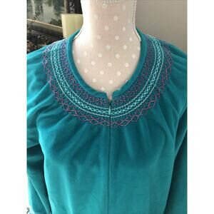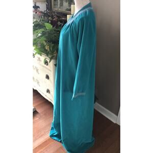 Vtg Vanity Fair Robe Housecoat Fleece Half Zip Long Pockets Turquoise Med