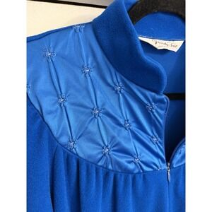 Vtg Vanity Fair Velour Long Robe Zip House Coat Blue Small Granny Core Read