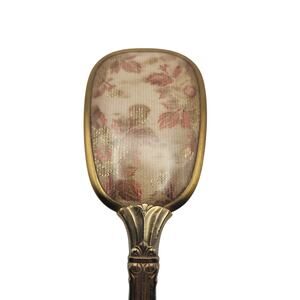 Vtg Vanity Hairbrush Gold Tone Handle Lucite Fall Autumn Floral Tapestry Nylon
