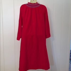 Vintage Vanity Fair red polyester velour snap up robe with smocked neck