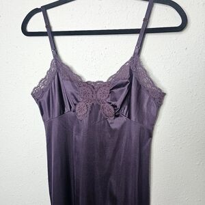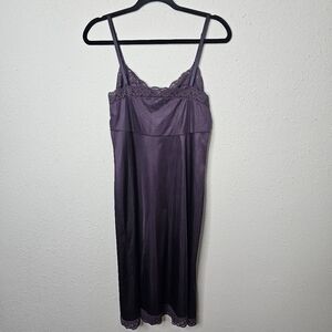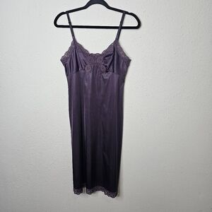 Vtg Vassarette Purple Slip Dress Lace Trim Womens 34 L Y2K