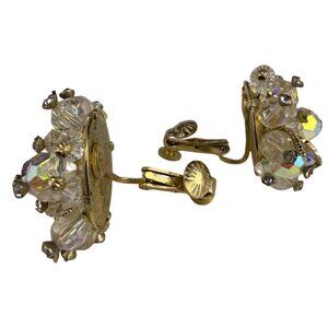 Vtg Vendome Gold Tone Aurora Borealis Crystal Brooch Matching Clip-On Earrings