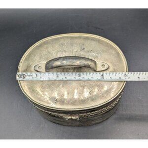 Vtg Vera Lucino Silver Hinged Box 2003 Zipper Detail Red Velvet Lining 5x4 Oval