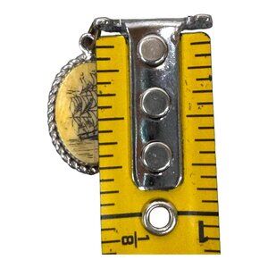 Vtg Verna Sterling Nautical Scrimshaw Sailboat Pendant Silver Rope Edge Maritime