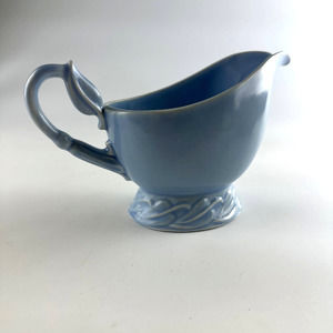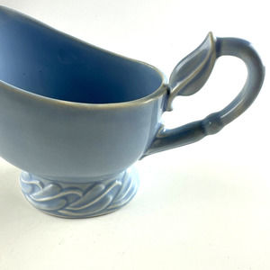 Vtg Vernon Kilns Native California Pottery Ceramic Gravy Boat Blue Leaf Pattern
