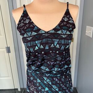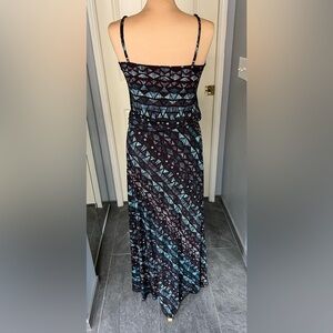 Vtg Veronica M Geometric Print Long Sleeveless Maxi Dress Boho Beach