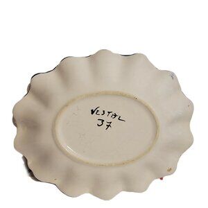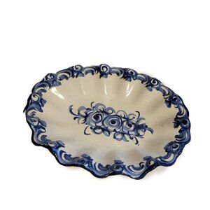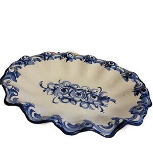 Exquisite Vtg. Vestal 37 Portugal Pottery Hand Painted Fluted Blue/Floral Dish. CC Box 2&3