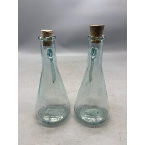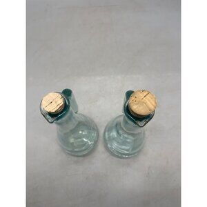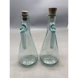 Vtg Vetreria Etrusca Decanters Bottle Aqua Green Glass Made In Italy Set 2 READ