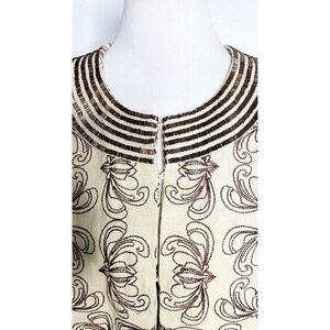 Vtg Victor Costa Brown Embroidered Beaded 100% Linen Coat Jacket
