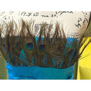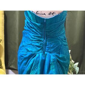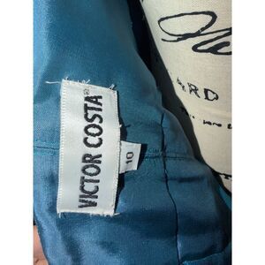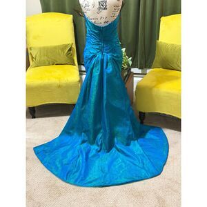 Vtg Victor Costa Teal Mermaid Gown w/ Peacock Feathers – Dramatic Train Size 10