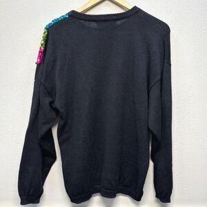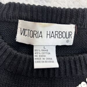 Vtg Victoria Harbour Argyle Geometric Beaded Sequin Black Party Sweater Large