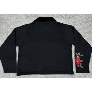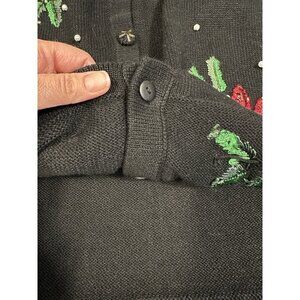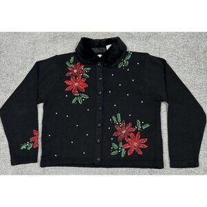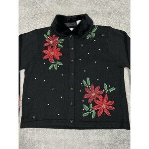 Vtg Victoria Jones Petite Christmas Sweater Womens Large Black Cardigan Faux Fur
