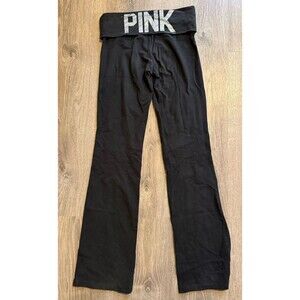Vtg Victoria Secret Pink Bling Stud Fold Over Boot Leggings Pants XS Black Y2k