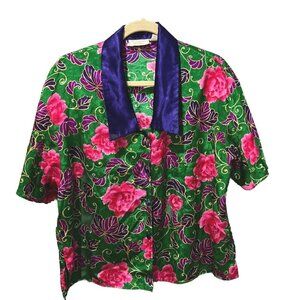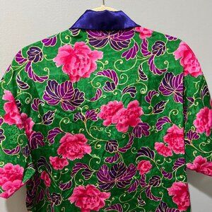 Vtg Victoria Secret Womens Multicolor Floral Silk Kimono Blouse Medium Button Up