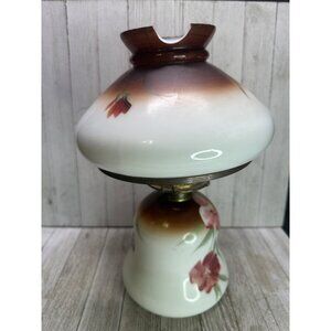 Vtg Victorian Hurricane Oil Lamp Painted Floral Design 13" Tall Decor Use