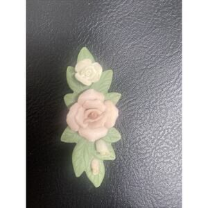 Vtg Victorian Porcelain China Rose Flower Brooch Pin Bar Figural 2.5”
