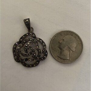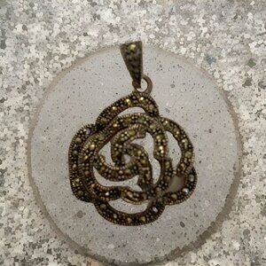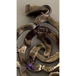 Vtg Victorian Sterling Silver Hematite Love Knot Pendant 925 RS Celtic