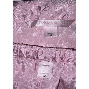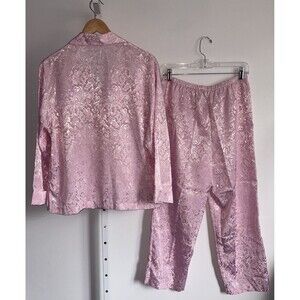 Vtg Victoria's Secret 2 Pc Pink Satin Pajama Set Y2K Size Medium Long Sleeve