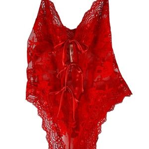 Excellent condition, no flaws. Vintage 90s Y2K Victorias Secret Lace bodysuit lingerie with bow closures in the front. Vibrant red color.