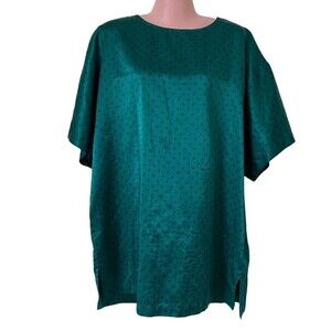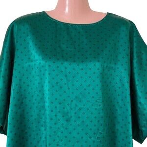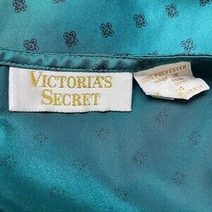 Vtg Victorias Secret Gold Label Women's Sleepshirt Medium Green Satin
