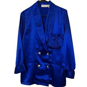 Vtg Victoria’s Secret Gold Label double breasted pajamas Sz S Blue Satin Crest