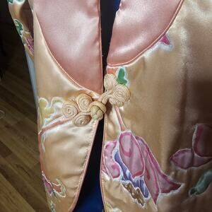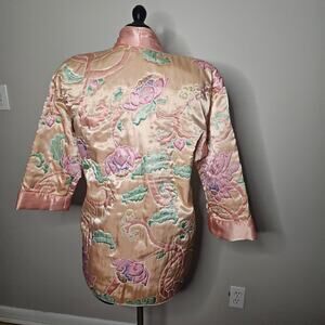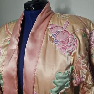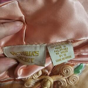 Vtg Victoria's Secret Gold Label satin quilted jacket floral print pink lapels