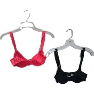 Vtg Victoria's Secret Pink Black Second Skin Satin Unlined Bra Lot Of 2 Sz 34B. Pre-owned