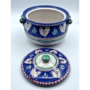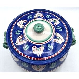 Vietri Solimene Campagna Chicken Large Tureen Blue Red Dots 8.5"