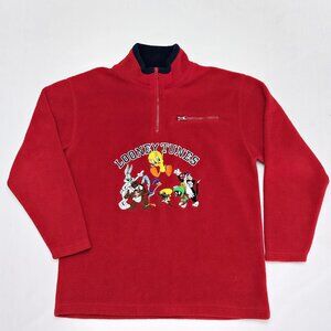 Vtg WARNER BROS Studio Store Looney Tunes 1/4 Zip Fleece Sweatshirt Pullover S