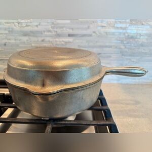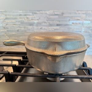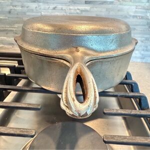 Wagner 1402 plated cast iron combo fryer/roaster set. Nice deep skillet like the chicken fryers this is a great combo set.