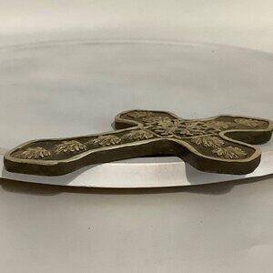Vtg Wall Cross Decorative Embossed With Leaf Design 7" X 5” Religious
