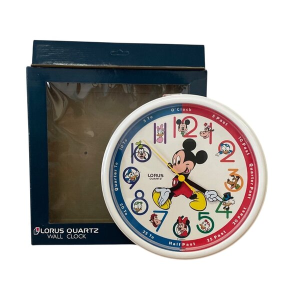 Featuring Disney characters, this Lorus Quartz wall clock showcases a playful design. Ideal for Disney enthusiasts, it adds charm to any room.