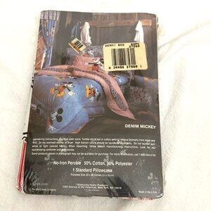 Vintage Wamsutta x Mickey & Friends at Home Denim Mickey Pillowcase. 1 Standard Percale. 50% Cotton, 50% Polyester. Made in USA. New old stock. Still in original package. Package shows some signs of age/wear. Please see photos.