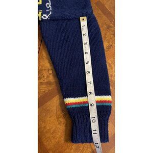 Vtg Warm Heart Kids 3T Sweater Cardigan Blue Knit Multicolor Trains Red Buttons