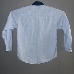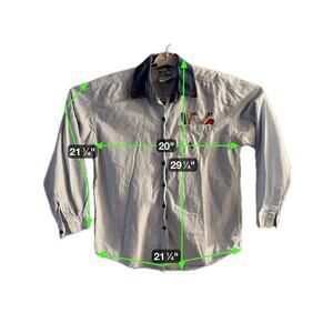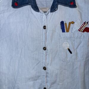 Vtg Way To Go Shirt Striped Denim Embroidered Button Down Novelty Denim Collar
