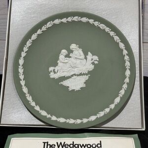 Vtg Wedgwood Jasper Sage Green Mother Plate 1972 With Pamphlet Made In England Signed